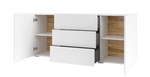 A stylish, functional and impeccably crafted sideboard cabinet that impresses with its high-quality craftsmanship and style. Ava comes in three different colours to choose from, allowing it to effortlessly blend in any modern or contemporary decor. It is made from 16mm laminated board, and offers three spacious drawers and four closed compartments for storage