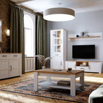 What truly sets this collection apart from others is its exquisite decor - featuring three colourways with an Oak finish. The subtle elegance of the light Riviera Oak contributes by adding a focal point to each piece. Also featuring black handles with soft close doors, making it truly stand out in any living space. Available in a White & Oak, Grey & Oak or Navy & Oak.