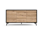 Add a sleek and sophisticated touch to your living room, dining room or hallway with the Diamond sideboard. It features two hinged doors, three drawers and four closed compartments for convenient storage. The cabinet's chic combination of Oak Evoke and black matt brings a unique touch of industrial modernism to the piece.