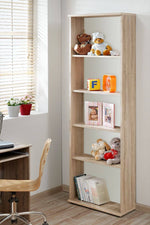 The DI-08 bookcase will add a charming and welcoming feel to any living space. Featuring five spacious open compartments and a rich Oak Sonoma and white matt finish, it offers ample space to display your favourite books and photos.