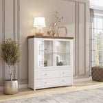 Create a wonderful display of your treasured collection with this stunning display cabinet. Perfect for displaying your prized books, decorative pieces or other collectables, as well as benefiting from its two drawers and two partially-glazed hinged doors for extra storage. It is constructed from high-quality 16mm laminated board and finished in the timeless Oak Lefkas with stylish green and would look fantastic in any modern or contemporary environment.