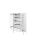 Bring an element of sophistication, grace and chic to your interior with the Femii FE-08 display cabinet. Finished in the minimalist white matt colour scheme, this gorgeous cabinet will effortlessly blend in any modern or contemporary decor. It is made from 16mm laminated board with two partially-glassed hinged doors, three shelves and a pair of drawers for storage.