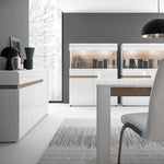 Unconventional design - a proposal for the followers of the latest trends. The clever mix of scratch resistant white melamine with beautiful high gloss fronts and oak melamine trim makes this top quality collection of furniture the ideal destination for the most modern of homes, the massive range that includes many cabinets and wall units fulfils every storage and display option.