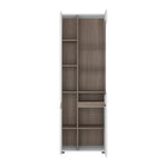 Tall Glazed Narrow Display unit (LHD) in white with an Truffle Oak Trim.