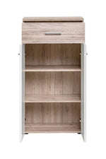 With a combination of crisp white gloss and timeless Oak Wellington, the Gustavo hallway cabinet has a distinctive look that is aesthetically pleasing. A simple yet functional design, it features two hinged doors and one drawer to provide you with diversity of storage options.