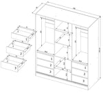 The Haidar wardrobe is your perfect all-in-one bedroom storage solution with everything you need including two sets of three cascading sized drawers on each side, shelves, rails, sliding doors to save space and even a full length crystal clear mirror on one of the doors. Each sliding door reveals its own individual fully accessible compartment. The Vanetta wardrobe uses every inch of space to its full potential. A fully integrated perfect combination of a functional wardrobe for any bedroom.