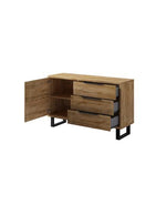 Accommodate your home storage needs with the Halle sideboard cabinet. Made of 16mm laminated board, it is sturdy and durable. It features a hinged door and three drawers for providing you with plenty of space for storage. The furniture has black metal legs that add a touch of modern flair to your decor. Traditional in appearance, it will complement any living room or dining area.