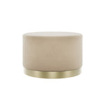 Luxe beige velvet upholstery contrasting with a classic brushed gold base, delivers a timeless piece that is multipurpose, whether it be side table, coffee table, extra seat or somewhere to pop your feet up and relax, Lara has it all and will bring a luxurious charm to your home.