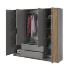 The Nelly four-door wardrobe is the perfect addition to any modern home. With eight broad shelves, one hanging rail and two spacious drawers, this all-in-one piece has ample space to store anything from clothes, bedroom essentials to small bags, shoes and other general items. Its availability in three different colours will make it easy to complement any interior and help you create an understated look that is sure to impress visitors.