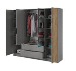 This stylish, highly functional and versatile mirrored four-door wardrobe is the ideal storage solution to meet all your bedroom needs. Featuring eight broad shelves, one hanging rail and two spacious drawers for storage, it will effortlessly blend in any modern or contemporary decor. It is made from 16mm laminated board so you can be assured it is durable, abrasion-resistant and exceptionally sturdy.