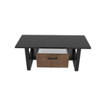 Its modern, rectangular design makes this coffee table versatile and highly practical. Two open compartments on either side of the drawer provide storage space for magazines, newspapers and other daily essentials, while the drawer itself is large enough to store remote controllers, casual snacks and similar small items without cramping your visual space. Finished in an elegant combination of matt black and warm oak tones, this stylish coffee table will enhance any decor.