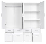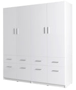 Sophisticated and stylish, the Snow is an exquisite four-door wardrobe crafted from 16mm laminated board in a stunning white gloss finish. Designed to impress with its high-quality craftsmanship and features, this beautiful piece will be a welcome addition to any bedroom. It features one hanging rail, two shelves and eight drawers for storage.