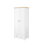 The SO-12 wardrobe is an excellent example of premium quality craftsmanship and durability. This stylish two-door wardrobe is finished in white matt with oak Nash decor, using 16mm laminated board. Featuring three shelves, two hanging rails and one large compartment, this functional and space-friendly wardrobe will fit any contemporary interior effortlessly.