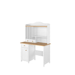 Complete your child’s bedroom setup with this functional desk hutch. Offering ample storage space and boasting an elegant white matt finish and oak-coloured handles, it will help you keep your desk in order. It is constructed from high-quality 16mm laminated board that can effortlessly accommodate the weight of books and files with ease. The Oak Nash decor gives it a modern touch.