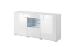 The Toledo 26 is a stylish sideboard cabinet that impresses with its high-quality craftsmanship and combines three hinged doors, one glass shelf and one drawer for storage. Available in two different colours - white or grey matt with San Remo Oak veneer, it will effortlessly blend in any modern or contemporary decor. The soft lines and subtle interplay of shadow and light make this unit stand out in any room.