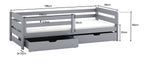The Ergo wooden bed is a high-quality bed. It is made of solid wood, and comes equipped with two large drawers for storage. The drawers are not fixed, which gives them portability and the opportunity to take them out or tuck them under the bed whenever needed. This bed is available in three different colours – white, graphite and pine, and can be bought with or without the appropriate mattress.