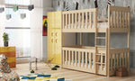 A safe and practical, pinewood bunk bed that offers a cot for ages 8 months to 6 years, and an upper floor bed for older children. Tall safety guards have been installed for both of these, including a universal ladder that can be assembled at the left or right side of the bed.